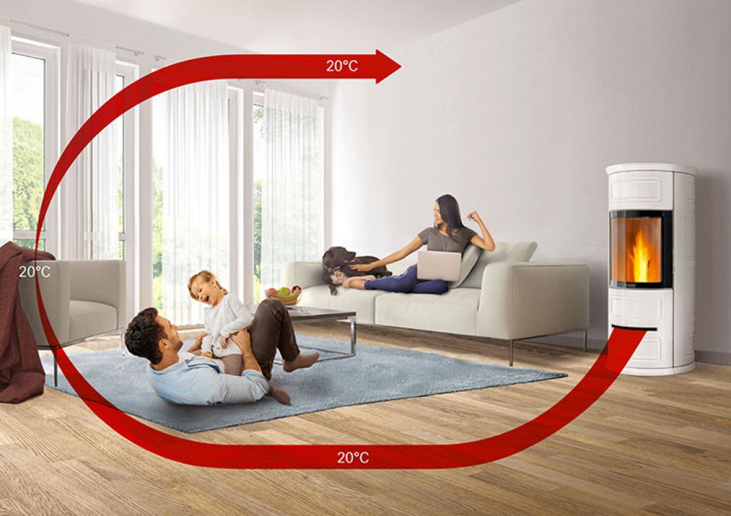Grâce à ce système breveté, la chaleur est distribuée dans la pièce, du bas vers le haut, pour ensuite se répartir dans toute la pièce grâce aux mouvements convectifs naturels, dépassant ainsi les performances des systèmes de chauffage traditionnels.