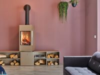 Cet élégant poêle à bois pivotant offre un design moderne : La chambre de combustion peut être tournée d'un angle de 30° vers la gauche et vers la droite.