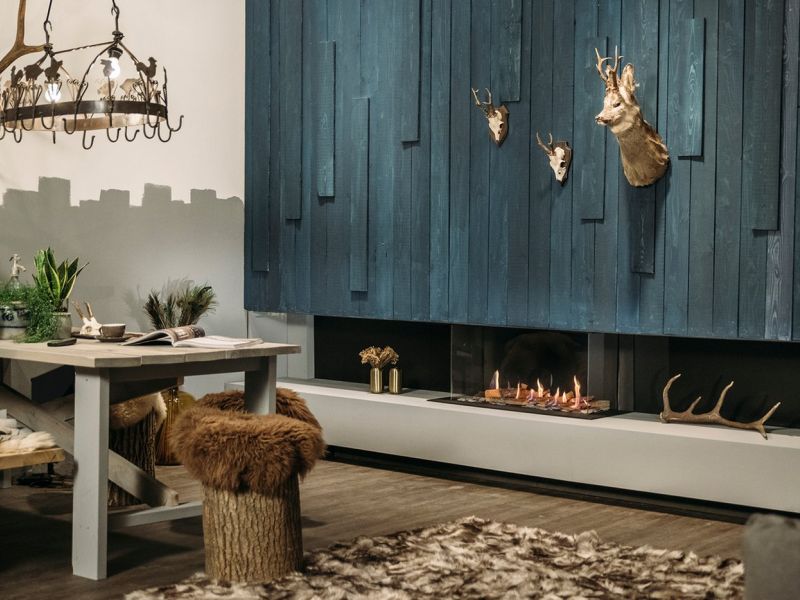 - Vous pouvez décorer les foyers linéaires avec un jeu de bûches réalistes, des galets de Carrare ou des éclats d’ardoise grise.