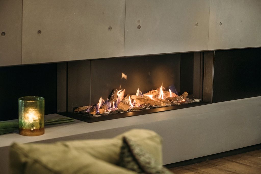- Vous pouvez décorer les foyers linéaires avec un jeu de bûches réalistes, des galets de Carrare ou des éclats d’ardoise grise.
