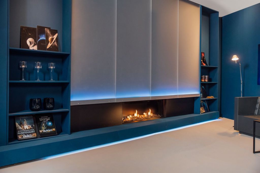 - Vous pouvez décorer les foyers linéaires avec un jeu de bûches réalistes, des galets de Carrare ou des éclats d’ardoise grise.