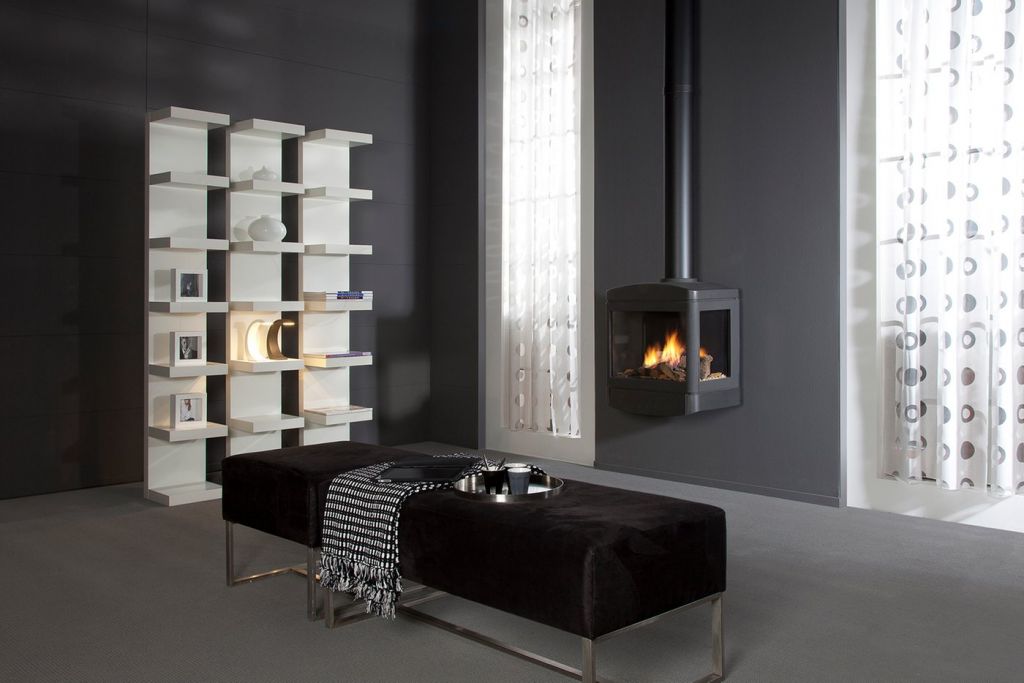 Skive est un poêle suspendu à trois faces indépendant et d’allure moderne en fonte noire. Il allie sobriété, robustesse et solidité.
