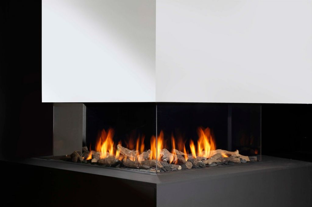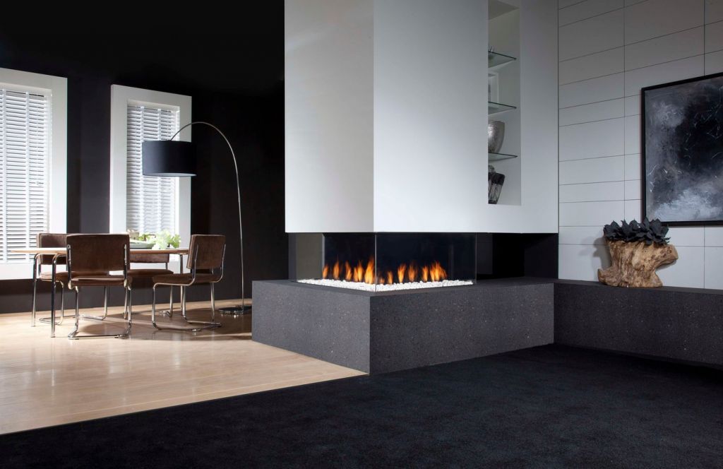 Un foyer Faber de la série Premium qui fait l’angle. Ce foyer encastrable doté du brûleur Faber Step Burner® ne passe pas inaperçu. Il est disponible avec différentes options.