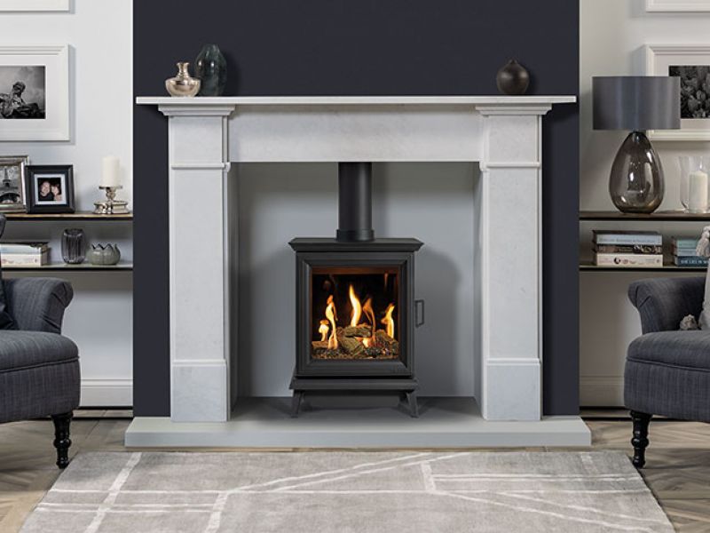 Le poêle à gaz Sheraton 5 de Gazco allie l’esthétique traditionnelle d’un poêle à bois classique, avec le confort d’un appareil à gaz. Ce poêle est doté de détails décoratifs tels que des corniches sur la porte en fonte, la plaque supérieure et la base.