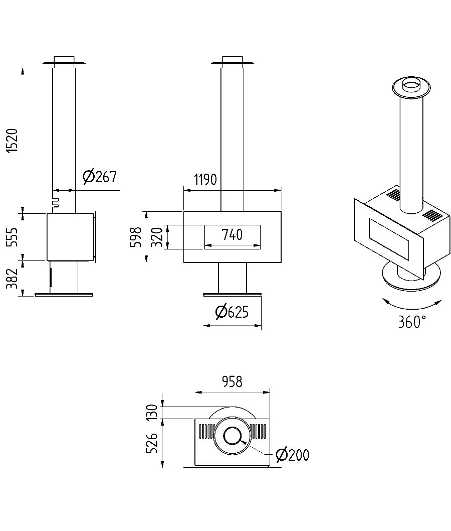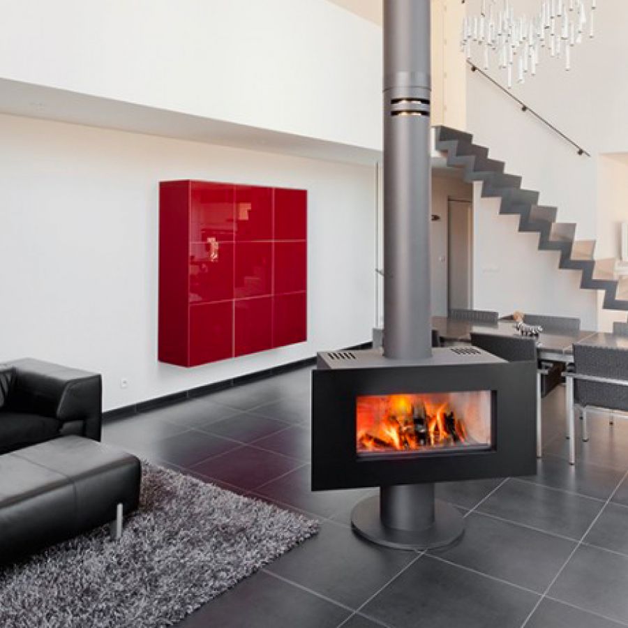 Ces poêles de format 16:9 Doté d’un pied circulaire peuvent être installer au beau milieu de la pièce et pivoter à 360° afin que vous puissiez profiter au maximum de la flamme. La hauteur d’installation maximum jusqu’au plafond est de 2,70 afin de permettre le poêle de pivoter, au dessus la position du poêle est fixe.