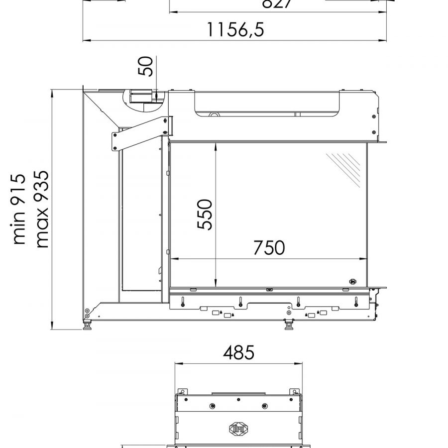 Direct flue : Directement sur le foyer avec un coude à 90° vers l'extérieur