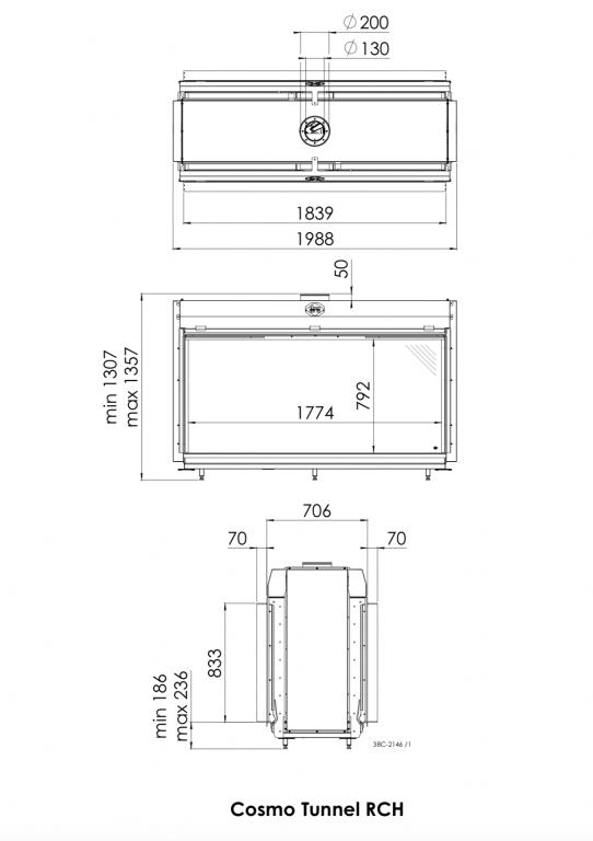 Taille généreuse et foyer transparent : Le Cosmo Tunnel Eco Wave est un foyer à gaz contemporain double face, de grande taille qui peut être installé entre deux pièces en même temps ou subdiviser une pièce pour devenir une source de chaleur étonnante.