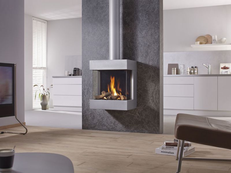 Le Diablo Next de DRU est un foyer mural à trois côtés en alu-métallique ou noir. Il est monté directement sur un mur perpendiculaire sans manteau de cheminée. Cela permet une installation rapide et facile et prend moins de place. Le conduit du dessus du poêle peut être camouflé derrière un couvercle correspondant.
