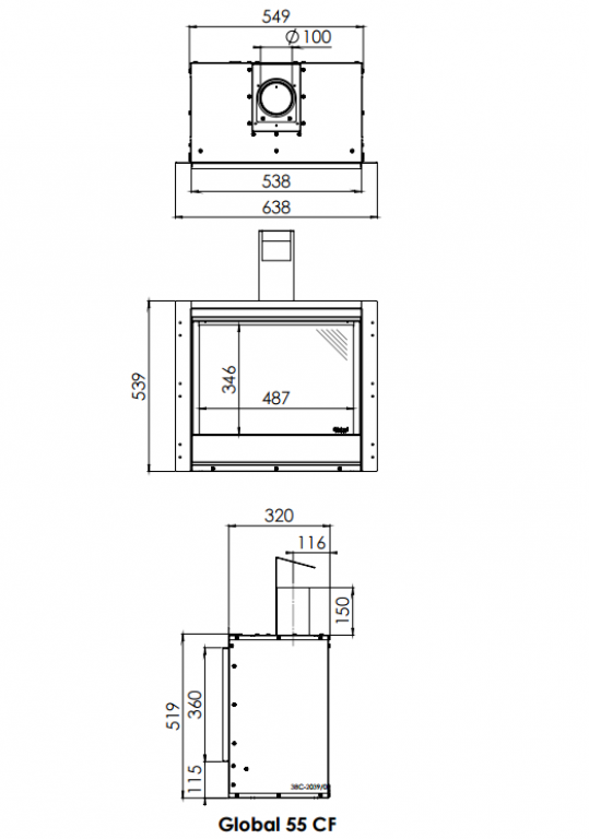Le Global 55XT CF est un foyer à gaz moderne avec une présentation de bûches authentique. Il a une largeur de 55 cm et une petite profondeur, ce qui permet son installation dans les plus petites cheminées.