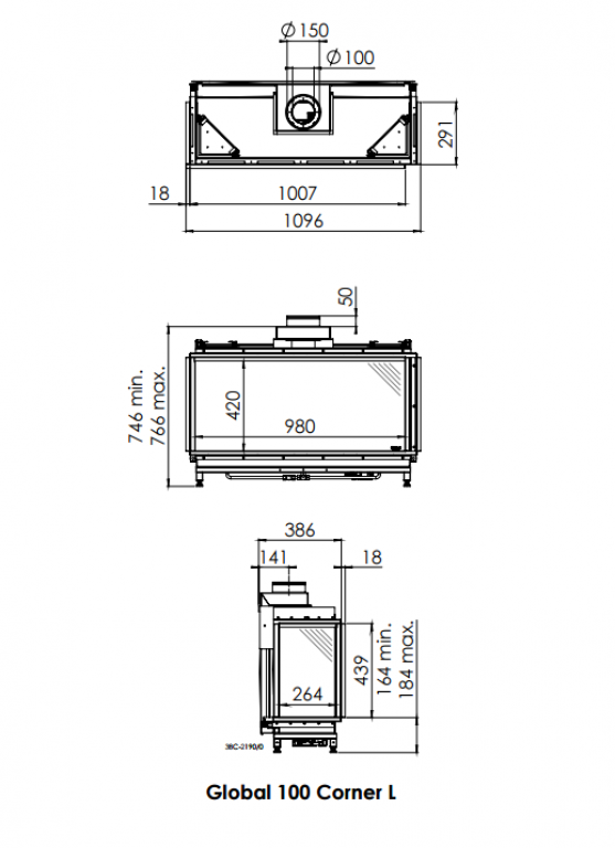 Le Global 100BF Corner est un foyer à gaz d’un mètre de large classique et contemporain avec une forme d’angle. Il propose des présentations de feu par bûches, pierres ou verre anthracite et une efficacité de 88 %. L’intérieur existe en noir et en Ceraglass vitrifié.