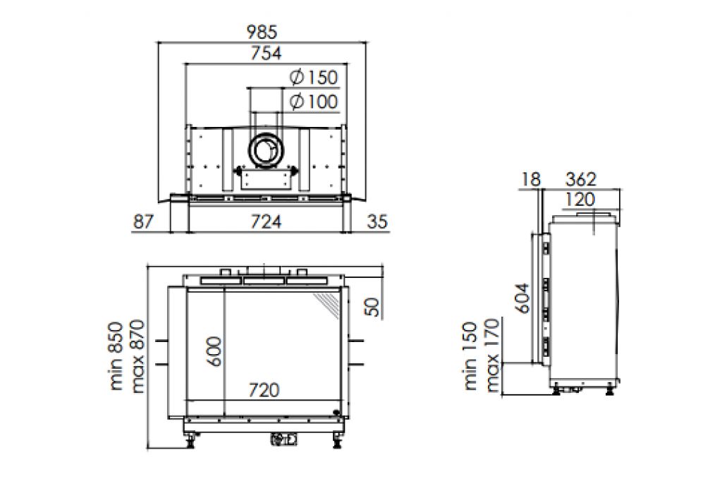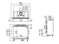 Direct flue, foyer avec coude à 90° vers l'extérieur