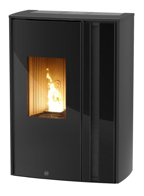 Le modèle de poêle à pellets Meltemi propose un système de soufflerie verticale, réglable et orientable.