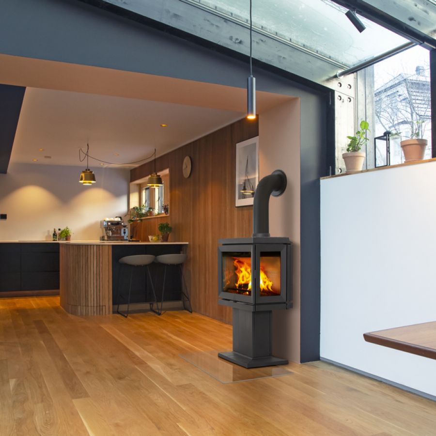 Pour un look résolumment contemporain, choisissez le piétement piédestral du JOTUL F620 P.