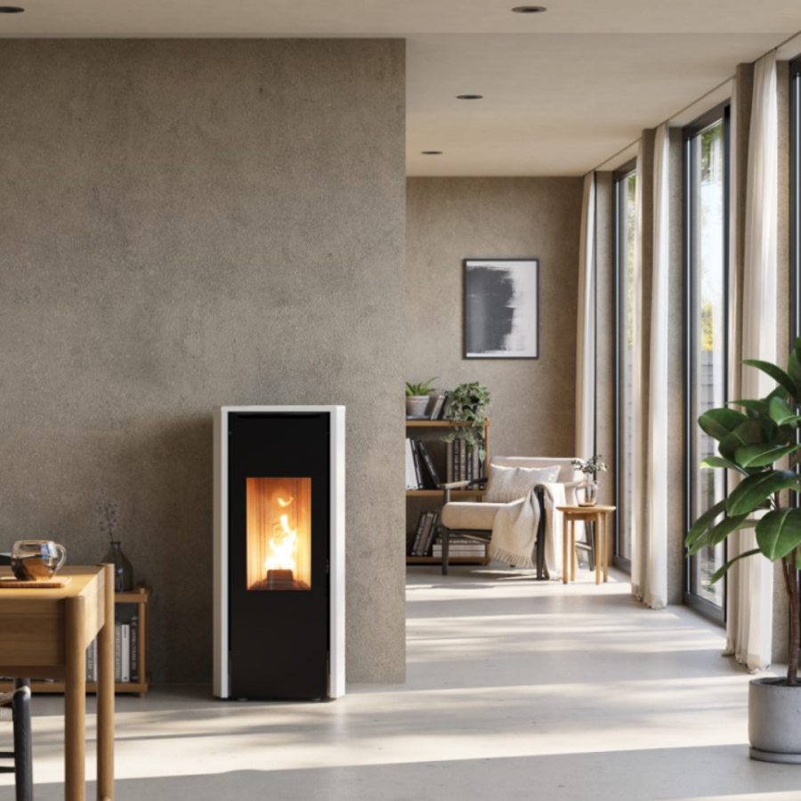 Le poêle à granulés Paddy se distingue par son design moderne et unique, en faisant le compagnon idéal des espaces de taille moyenne. Son intégration harmonieuse dans tous les environnements est accompagnée d'une diffusion efficace de l'air chaud, pouvant être canalisée vers d'autres pièces en option.