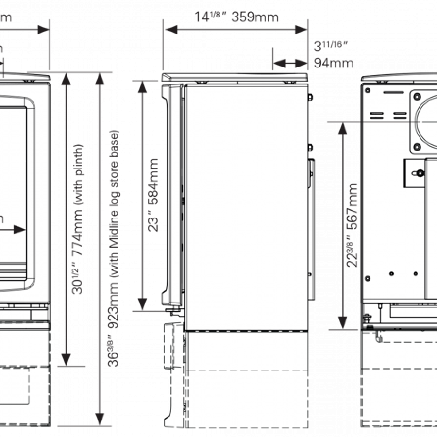 Le Midi T peut être installé avec la base Midline conçue pour stocker les bûches et réhausser le poêle.