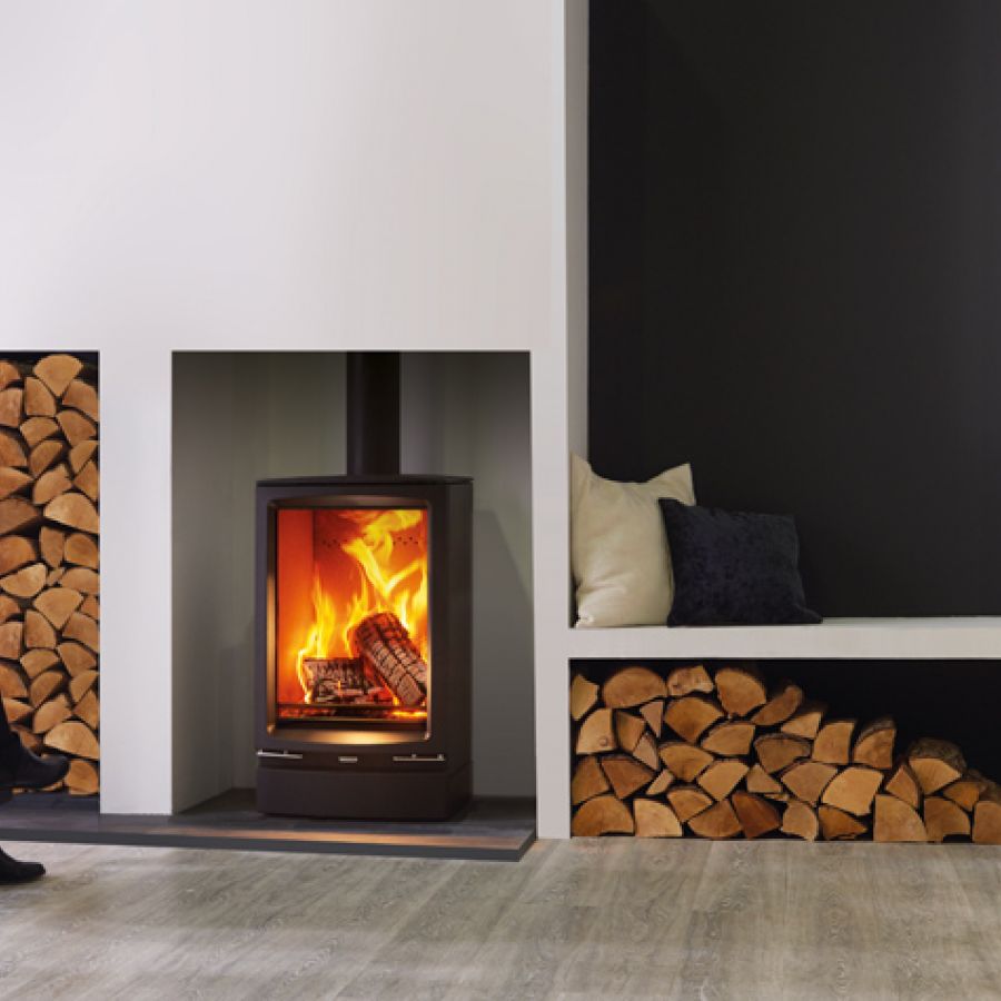 Le poêle à bois Vogue Midi a été revisité afin de proposer le Midi T, qui offre non seulement une combustion tout aussi propre mais aussi une vitre plus spacieuse pour un visuel enflammé exceptionnel.