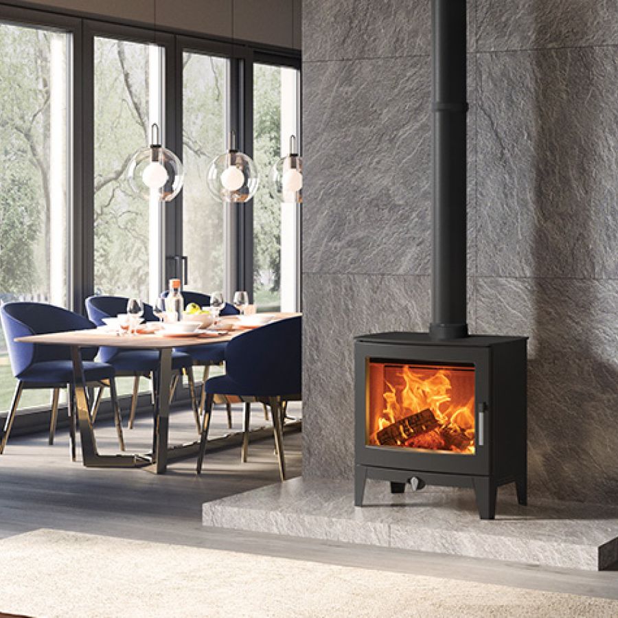 Le poêle à bois Futura 8 de Stovax est conçu pour chauffer efficacement de grands espaces grâce à sa puissance de 8 kW. Doté d’un design contemporain épuré, il s'intègre parfaitement dans tous les intérieurs. Équipé des technologies Airwash et Cleanburn, il offre une combustion propre et une vitre toujours claire. Sa compatibilité avec les multi-combustibles et son haut rendement énergétique (jusqu'à 76,4%) en font un choix durable et écologique.