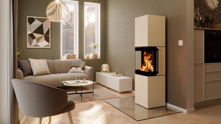 Le Spartherm Trico L est un poêle à bois aux proportions élevées, idéal pour les pièces avec des plafonds hauts. Avec une puissance thermique de 4,5 à 7,8 kW, il offre une vue dégagée sur le feu grâce à ses grandes vitres en forme de U. Ce modèle est contrôlable numériquement via S-Thermatik NEO et peut être équipé de chamotte noire pour accentuer la beauté des flammes.