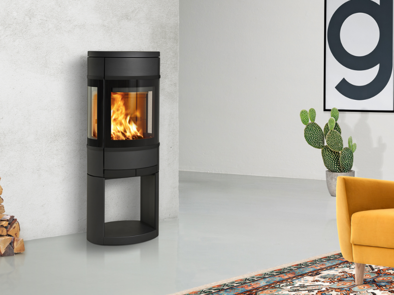 Le poêle à bois Scan 68 11 Open Base mêle design danois contemporain et performance technique. Son piétement traversant élégant et ses 3 vitres offrent une vue panoramique sur les flammes, parfaitement adapté à différents intérieurs. Doté d’une puissance nominale de 5,5kW, d’un rendement de 79% et d’un format compact, il chauffe jusqu’à 120m² et accepte des bûches jusqu’à 33cm. Disponible en acier noir ou blanc, avec option dessus pierre ollaire, il s’intègre aisément dans un intérieur haut de gamme.