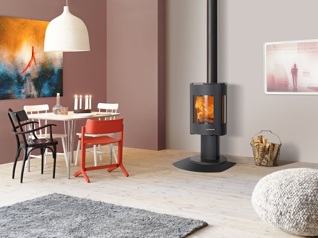 Découvrez le poêle à bois ILD 15 ECO, un modèle au design contemporain doté d'un élégant piétement piédestal.