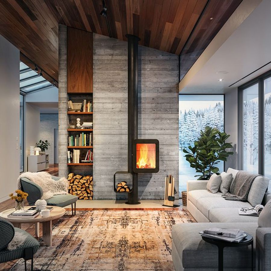 Plus qu'un simple poêle, il s'agit d'une structure architecturale qui sublime le feu et organise l'espace. Son foyer surélevé, associé à un casier à bois décalé, facilite son utilisation et s'adapte à divers environnements.