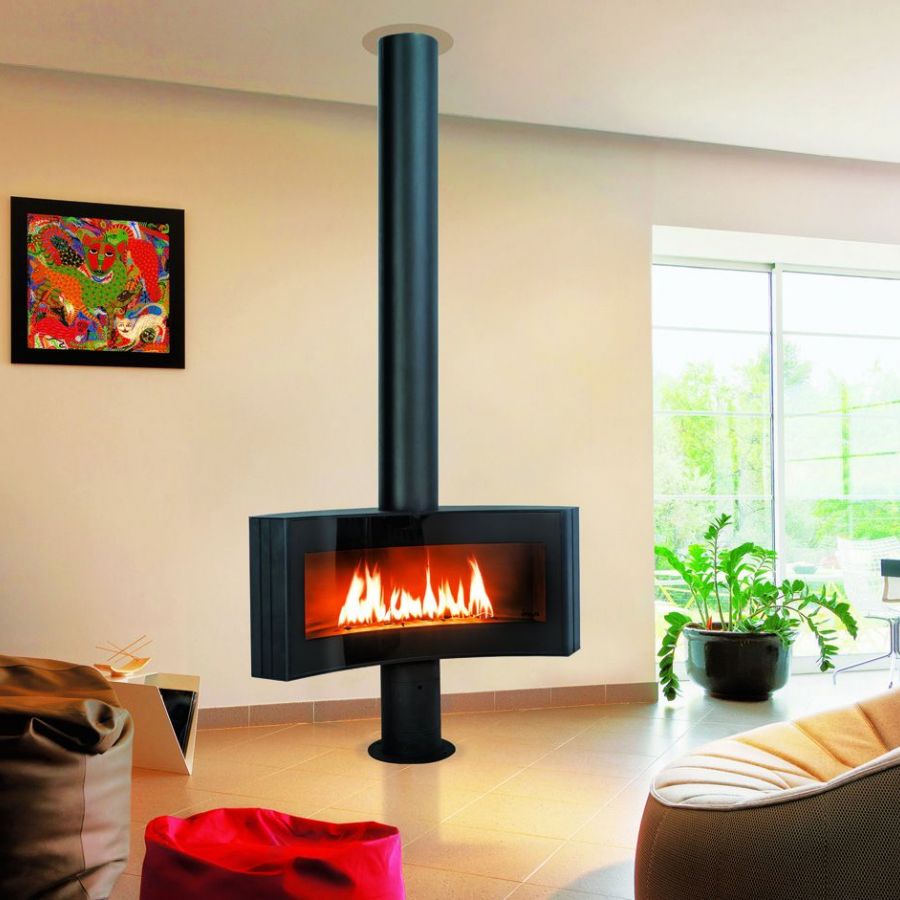 Le Curvifocus est le premier poêle à gaz au monde doté d'une façade concave, offrant une visibilité exceptionnelle des flammes et attirant tous les regards vers son design unique.