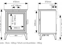 Options | Modèle bois Modèle multi-combustible avec cendrier Kit d'air extérieur Pieds longs de 172mm |