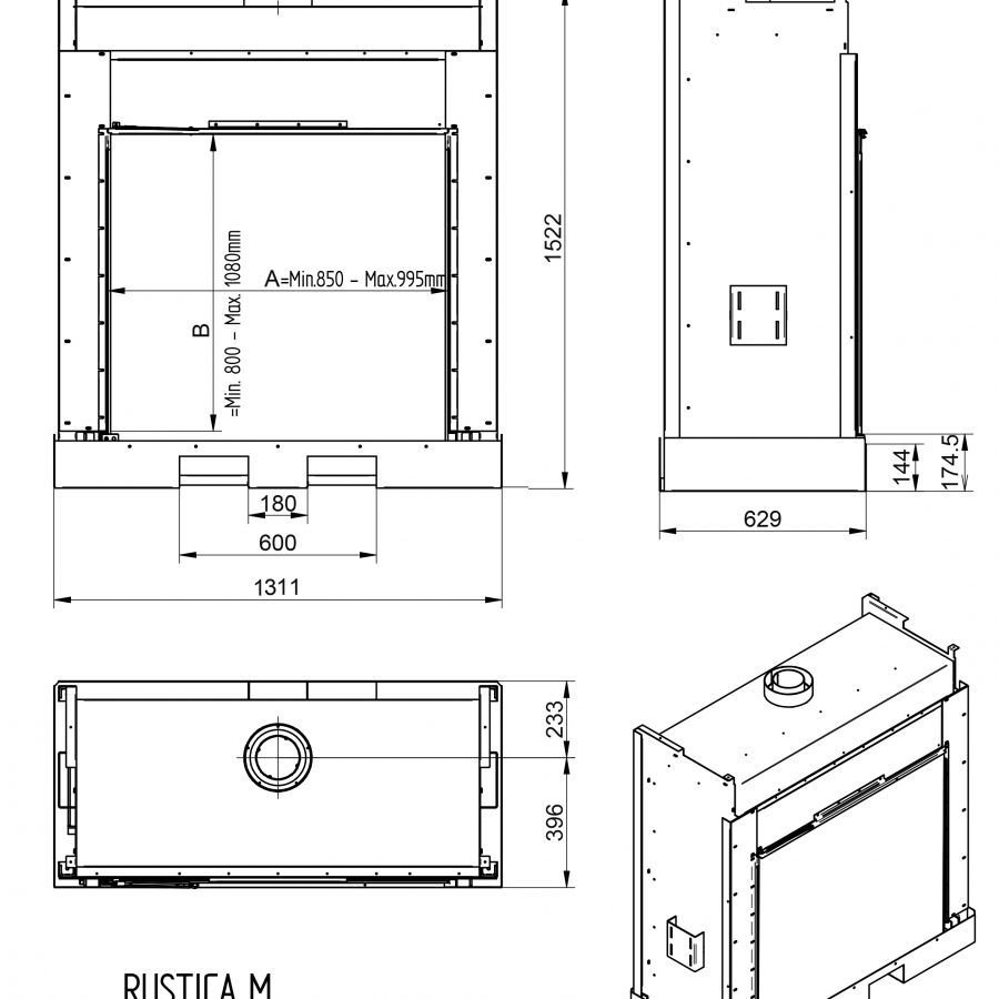 Les foyers Rustica sont conçus pour s’intégrer parfaitement dans une ancienne cheminée avec habillage en pierre. Trois dimensions de forme classiques verticales sont proposées, M médium / L large / XL extra-large. Ces cheminées gaz peuvent être équipées d’un intérieur en acier, cependant l’idéal est de concevoir un fond en briquettes assorties à la couleur de l’habillage en pierre pour un rendu plus harmonieux.