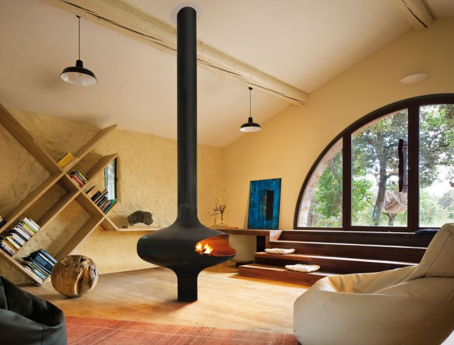 La cheminée centrale Magmafocus de Focus est une pièce maîtresse au design saisissant, partageant la même silhouette que le modèle Domofocus avec un diamètre de 1,10 mètre.
