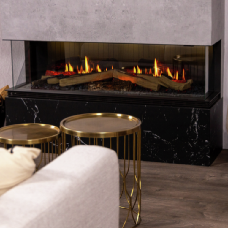 Avec ses 130 cm de large, il crée un impact visuel fort, sublimé par la technologie Opti-myst® qui génère de véritables flammes avec de la brume d’eau. Son insert bûches réaliste, ses vitres sur trois côtés et son éclairage LED multicolore permettent une immersion totale.