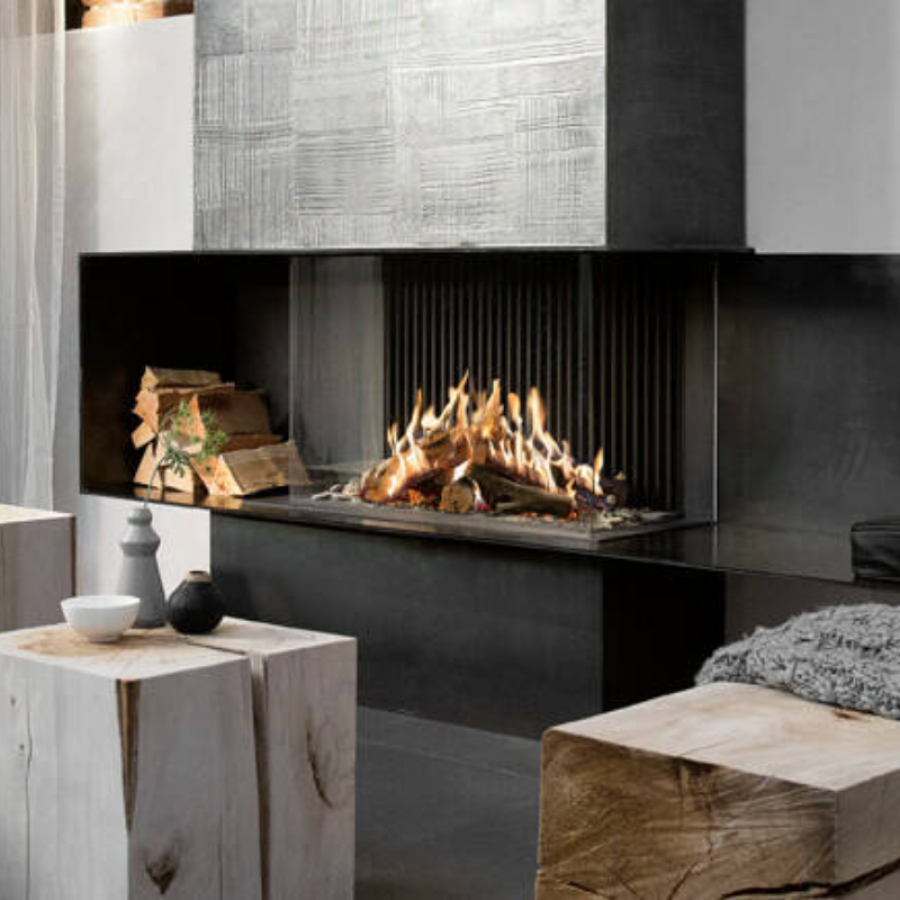 Grâce à sa large vitre frontale (85 x 55 cm) et ses parois latérales vitrées, il offre une immersion totale dans la flamme, parfaite pour les salons ouverts ou les séparations d’espace.