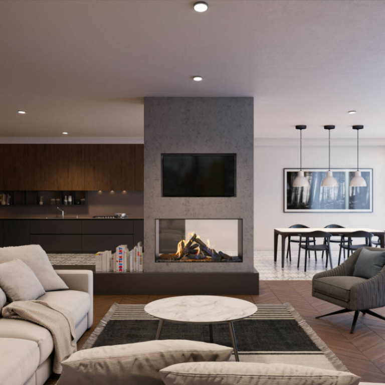 Kalfire GP110/59T : Cheminée gaz tunnel – Vue traversante grand format et ambiance feu authentique