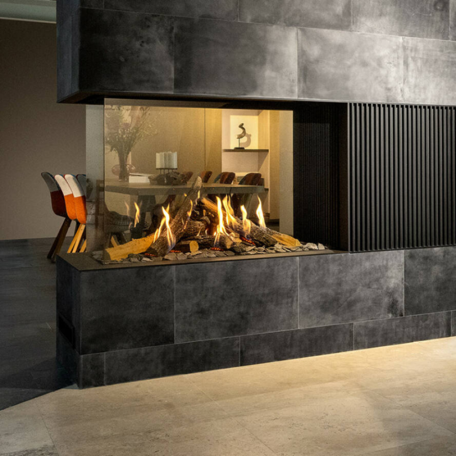 Le modèle Kalfire GP115/75R s’impose comme une solution idéale pour structurer un grand volume tout en offrant une vue verticale spectaculaire sur les flammes. Ce séparateur d’espace gaz au format généreux (1150 x 450 x 790 mm) conjugue esthétique contemporaine et performance thermique.
