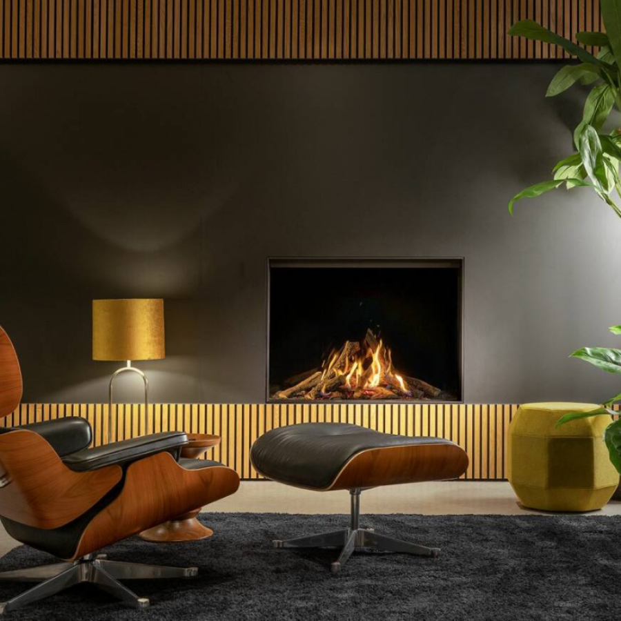 Le Kalfire Gi 105/79F est un foyer gaz frontal au format vertical généreux (1050 x 790 mm), idéal pour donner de la hauteur et de l’élégance à votre intérieur. Équipé en standard d’un intérieur plat, d’un remplissage en bûches réalistes et de la technologie exclusive EmberGlow (fonction hybride simulant les braises incandescentes), il offre un rendu de flamme authentique et chaleureux.