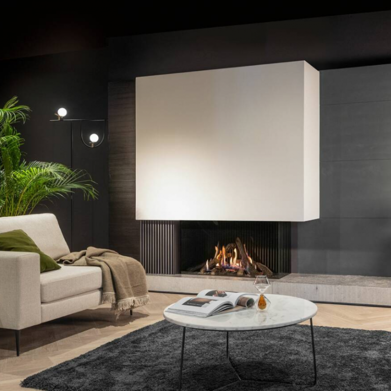 Le Kalfire Gi 110/75C est un foyer gaz en coin (version gauche ou droite) qui séduit par son format vertical généreux et son design raffiné. Sa grande vitre en L de 1100 x 364 x 790 mm offre une vue spectaculaire sur les flammes, idéale pour sublimer les intérieurs modernes et donner une impression de hauteur et d’espace. En configuration standard, il est équipé d’un intérieur plat, d’un contre-cadre discret et de la technologie exclusive EmberGlow, qui recrée l’effet authentique des braises.