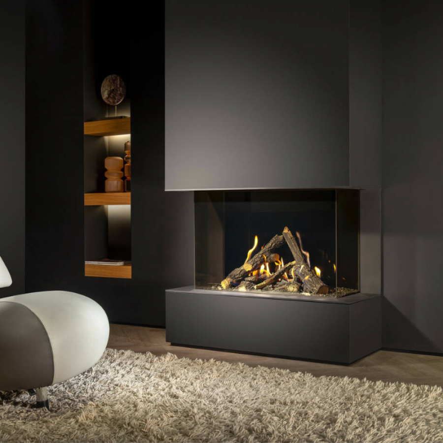 Le Kalfire Gi 115/55S est un foyer gaz 3-côtés qui combine élégance contemporaine et technologies de pointe. Sa large vitre en U de 1150 x 364 x 590 mm offre une vision immersive des flammes sous trois angles, créant un effet spectaculaire et chaleureux dans votre intérieur. En standard, il est équipé d’un intérieur plat, d’un contre-cadre de 3 cm et de la technologie exclusive EmberGlow (fonction hybride reproduisant l’éclat des braises incandescentes).
