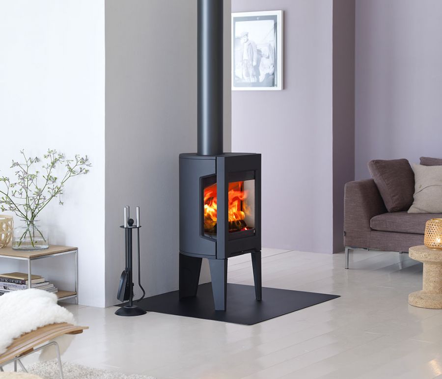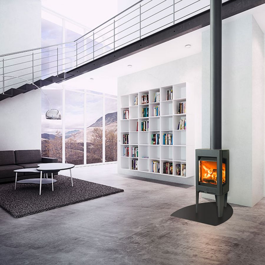 3 pieds pour un look original et 3 vitres pour une vue epoustouflante sur les flammes !