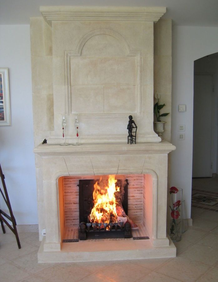 Cheminée moderne en pierre avec foyer ouvert à bois – Alpes-Maritimes