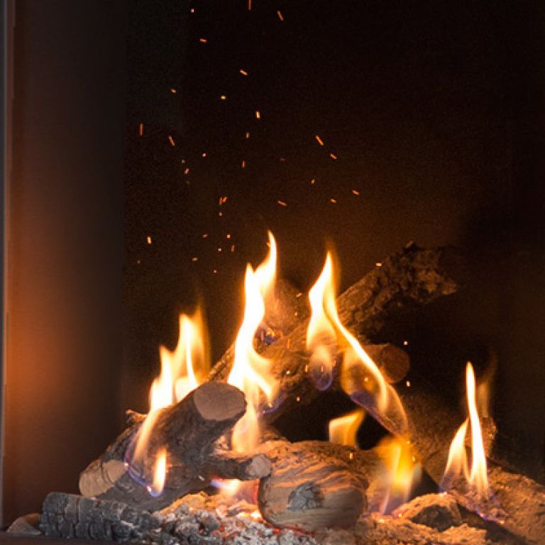 Le brûleur Prestige breveté est installé dans l’ensemble des foyer gaz GP du fabricant Kalfire. Les flammes s’échappent depuis les nervures des bûches pour un réalisme impressionnant, avec une possibilité d'étincelles (Natural Spark Generator). En fonctionnement dans le show-room Atre Design pour vous faire une idée précise de l'effet rendu et de la chaleur produite.
