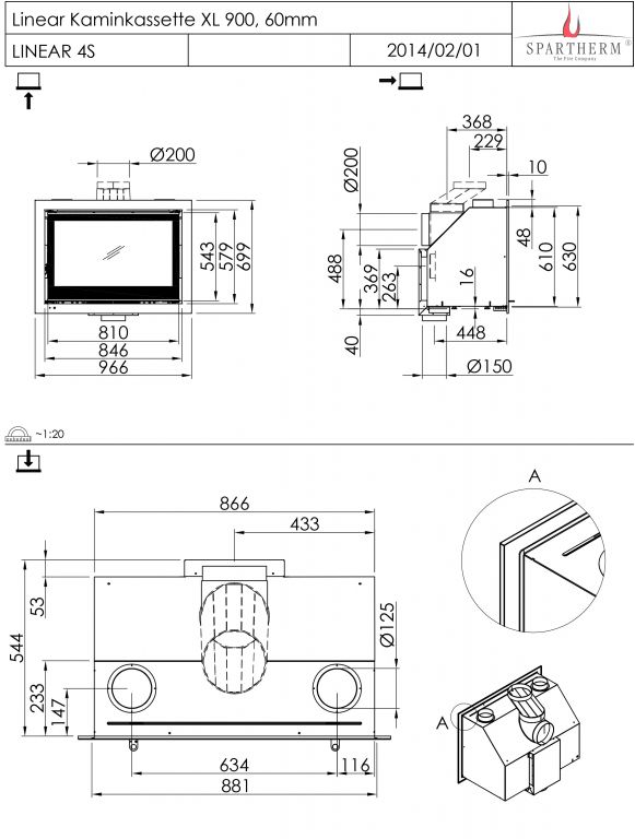 LINEAR Kassette XL 900 est un insert avec une large vue sur les flammes et un rendement élevé de maximum 13,7 kW.