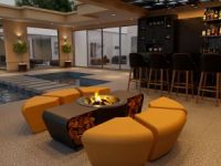 Glammfire a développé un modèle de cheminée extérieure qui intègre des sièges confortables disponibles dans une variété de couleurs.
