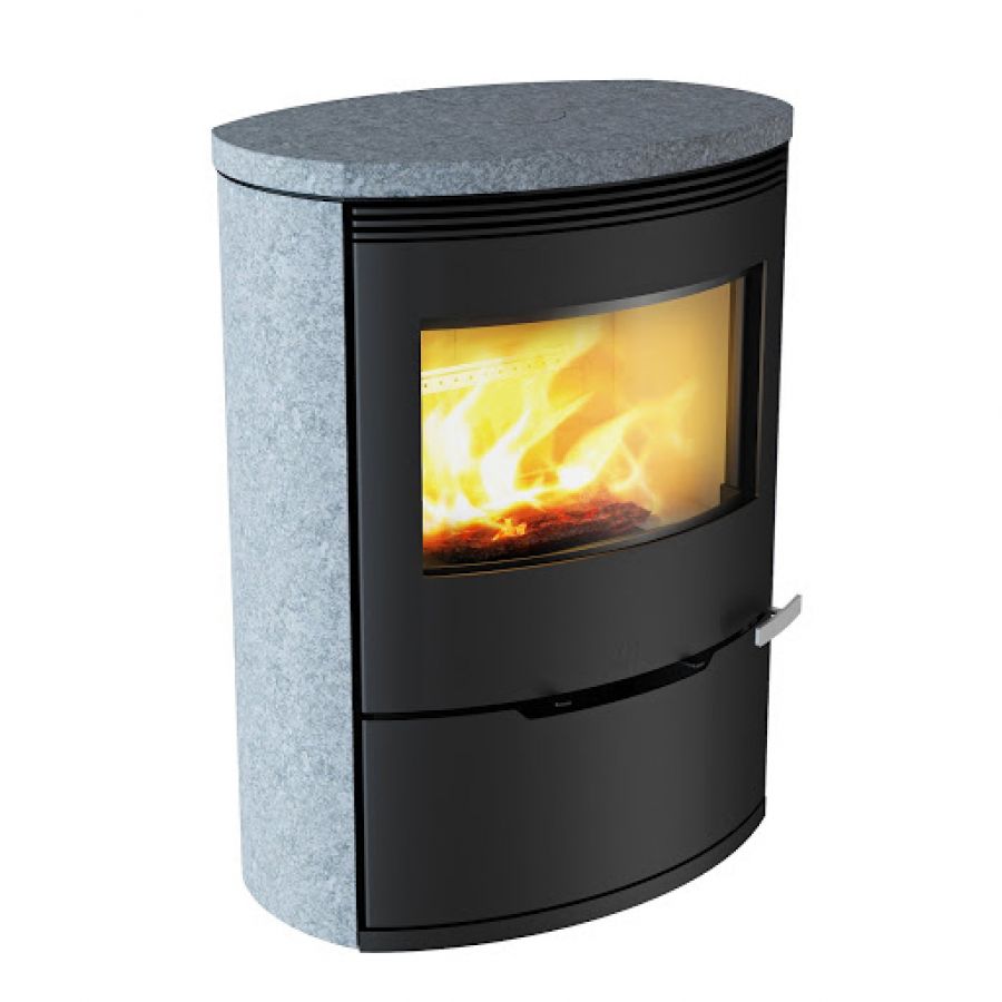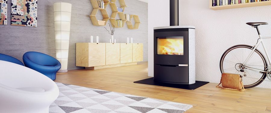Le poêle à bois ILD 13 est doté de parements en pierre Serpentine et avec une puissance de 9 kW est idéal pour chauffer les grands espaces.