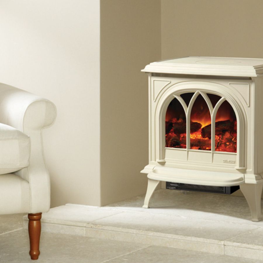 La version électrique du populaire poêle à gaz Huntingdon de Gazco est doté de lignes gracieuses et raffinées et d’une porte à moulures ogivales derrière laquelle l’effet bûche et braises rougeoyantes Vériflame™ captive le regard.