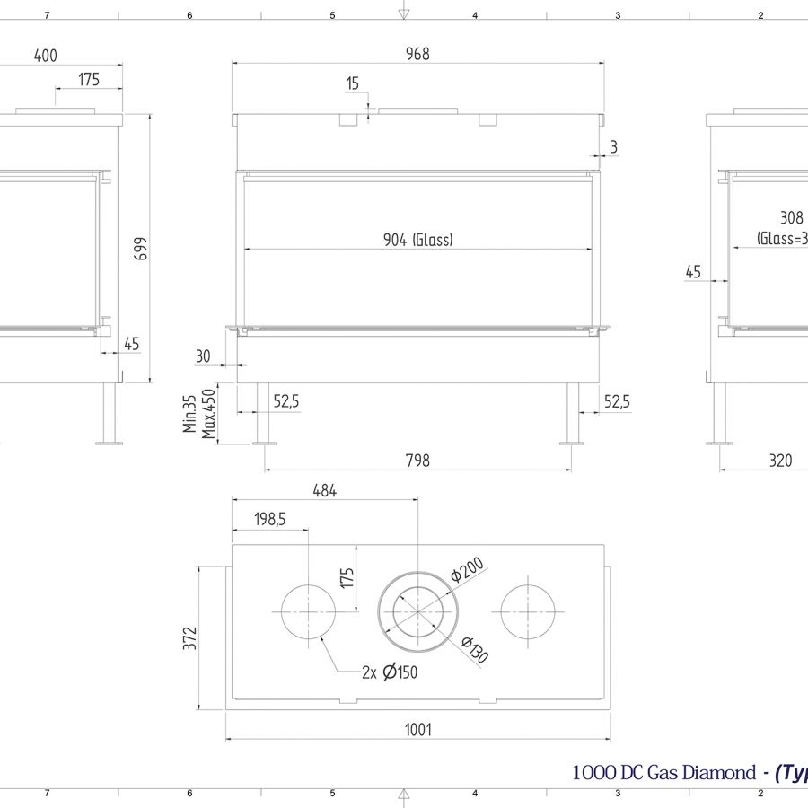 Le LUNA Diamond Gaz 1000 DC est une cheminée gaz 3 faces.