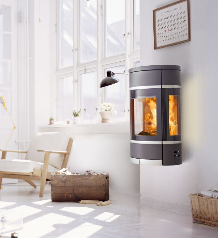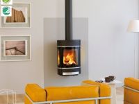 Elégant poêle à bois suspendu design, idéal pour un gain de place