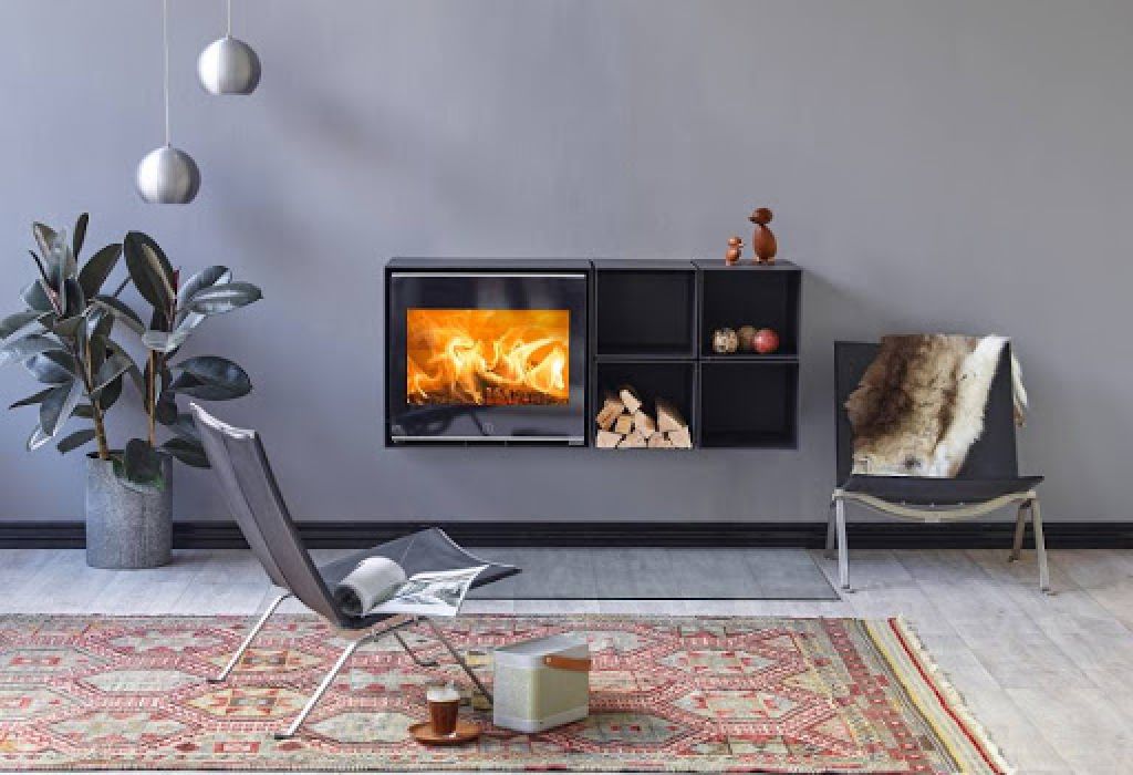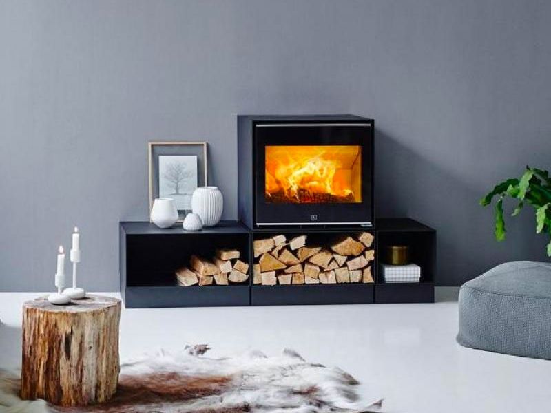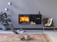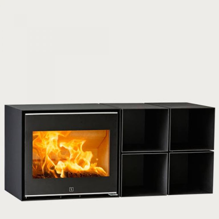 Ce poêle design allie esthétique et praticité. Les bûchers initialement destinés au rangement de vos bûches ont également été pensés comme des éléments de décoration. Cadre, livres, objets de décoration y seront les bienvenus.