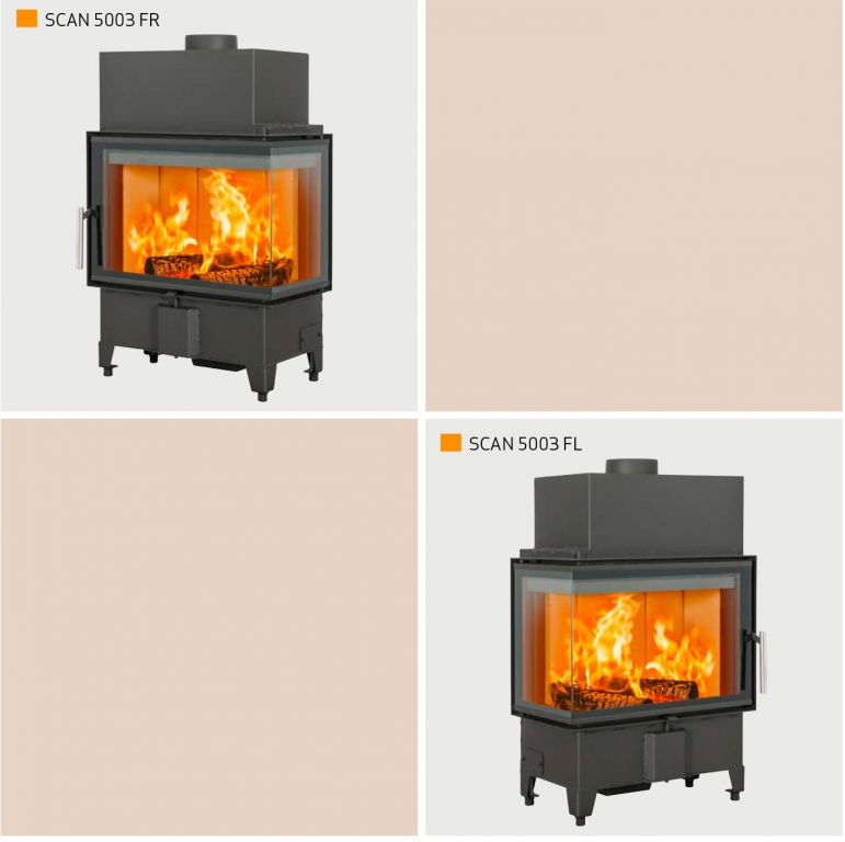 Pour une meilleure vue sur les flammes, optez pour le foyer à bois Scan 5003 et sa vitre latérale à droite ou à gauche.