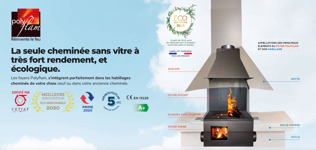 Polyflam est un système unique offrant une double fonction de feu ouvert / feu fermé : les amoureux du feu traditionnel ne perdront rien au rendement calorifique, même sans vitre !