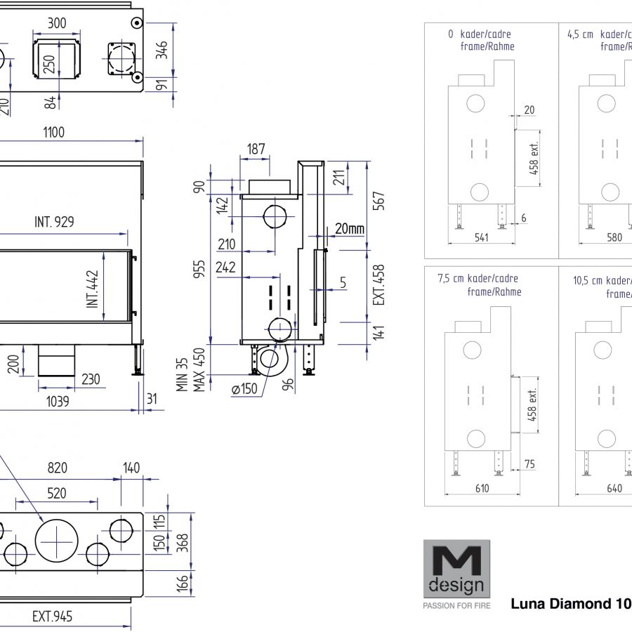 La Cheminée Bois Luna Diamond 1000 H fait partie des cinq foyers bois de forme horizontale proposé par M-Design. Ce foyer est doté d’une vitre et pare feu escamotables, d’un cadre de finition de 8mm d’épaisseur et au choix d’un intérieur en acier ou en fonte.
