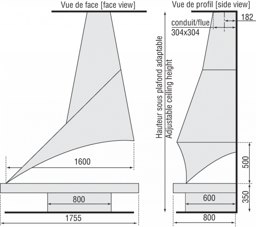 Options | Socle briqueté ou tout métal Socle effet ciré (couleurs : blanc cassé, noir ébène, gris, taupe, chocolat) Socle vide, (sans briques), finition à réaliser par vos soins Rehausse de socle, (20 cm maximum) Rallonge de conduit non laqué , (au-delà de 2,5 M et pour 1 M supplémentaire) Platine cache plafond Fixation pour cheminée murale Caisse bois Transport cheminée jusqu'à 4 M de hauteur sous plafond Transport cheminée grande hauteur, au delà 4 M de hauteur sous plafond |